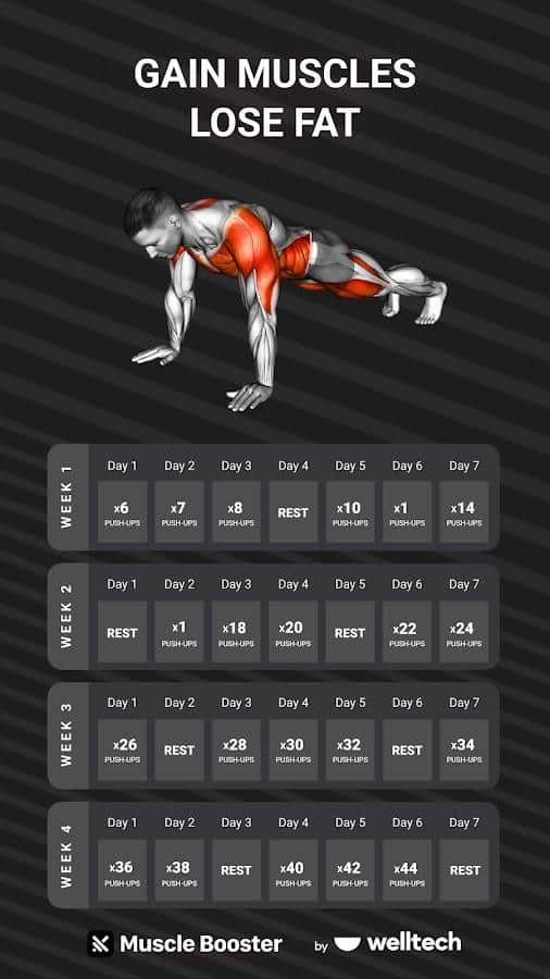 Испытайте уникальную программу ежедневных тренировок, адаптированную к вашим целям по снижению веса, наращиванию мышечной массы и укреплению силы! Независимо от того, предпочитаете ли вы тренироваться в уюте дома или посещать спортзал, планировщик тренировок от приложения Muscle Booster создаст для вас персонализированный фитнес-план. Этот план будет ориентирован на ваши желаемые результаты, предоставляя необходимые указания по количеству подходов и повторений для достижения ваших целей.