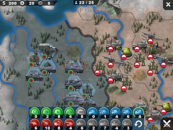 World Conqueror 4 – отличная стратегия для IOS, где вы будете заново переигрывать исторические сражения. Выбирайте любую страну из представленных в игре и развивайте и улучшайте ее. Используйте дипломатию, заключайте нужные вам союзы с другими странами и создавайте огромную армию. Нанимайте на службу опытного генерала, которых в этой игре представлено более 230 и разрабатывайте свою стратегию ведения игры. Проходите увлекательные миссии и компании игры и применяйте в сражениях многочисленные юниты и современные технологии. В игре также присутствует автоматический режим где вы сможете сражаться и вашими войсками будет управлять компьютер. Завоюйте весь мир в этой игре и приведите свою страну к процветанию.