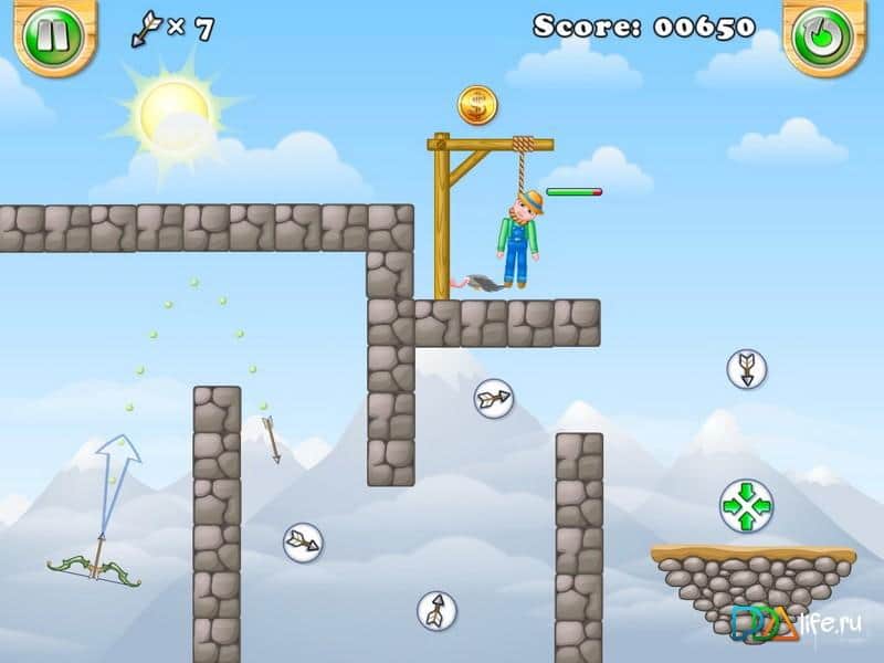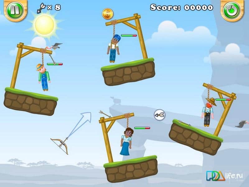 World of Gibbets - головоломка, сделанная по подобию игры Flash, в которой вам предстоит освобождать висельников с помощью одного меткого выстрела из лука. Возьмите в руки лук, стреляйте по веревке, обходя все препятствия и преграды, и освободите невинного человека. С каждым новым уровнем сложность игры будет возрастать и число ловушек тоже, так что тренируйтесь и станьте героем в этой игре.