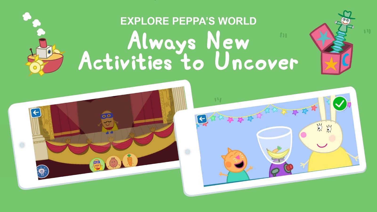 World of Peppa Pig: Kids Games - Встретьтесь со всеми любимыми персонажами мультсериала "Свинка Пеппа" и отправляйтесь в веселые приключения! Исследуйте знакомые локации из мультсериала, такие как дом Пеппы и ее друзей, школа, детская площадка и многое другое. Они смогут играть в различные задания и мини-игры, которые будут развивать их креативность, логическое мышление и моторику. В игре представлены разнообразные задания, включая раскрашивание рисунков, сбор пазлов, поиск предметов, игры на память и прочее. Эта игра станет отличным способом провести время в необычной обстановке!
