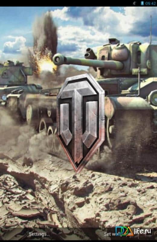 World of Tanks 3D – всем любителям игры в танки посвящаются живые обои для андроид устройств по одноименной игре от разработчика iDmix. Обои содержат 12 фоновых изображений выполненных в формате HD, на переднем плане будет вращаться 3D логотип игры, размер которого можно установить но своему желанию, также есть возможность регулирования нужного параметра FPS. Обои выполнены качественно и красиво. Наслаждайтесь!