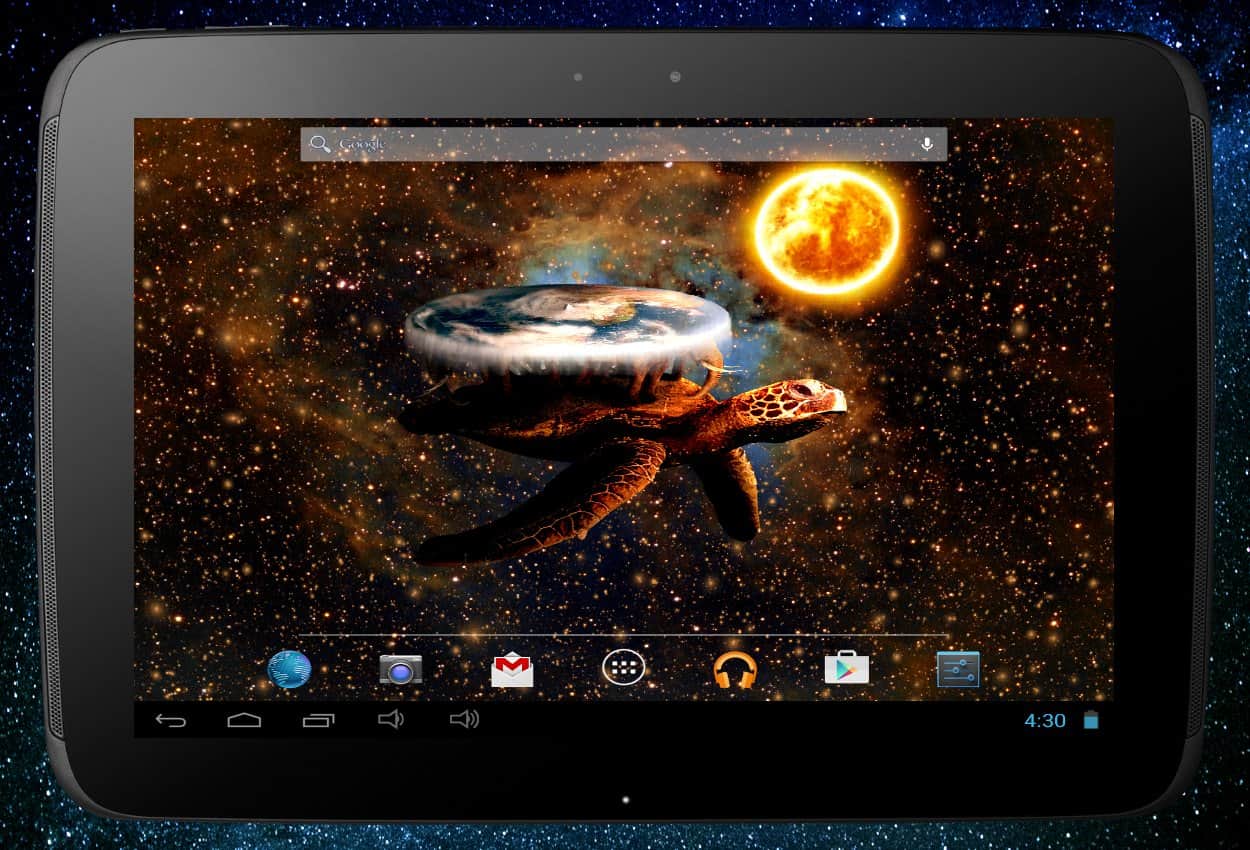 World Turtle Pro LWP – анимированные живые обои на андроид, где вы окажитесь в фантастической вселенной. Мир этих обоев был выдуман известным английским писателем сэром Терри Пратчеттом. Все действия в его книгах происходят на выдуманной планете, которая имеет вид в виде диска, и держат ее четыре слона, которые в свою очередь располагаются на спине огромной черепахи великой Атуин. На этой планете все законы физики не действуют, время течет очень медленно, радуга имеет восемь цветов, а магия материальна. Установите эти обои в свой телефон или планшет и наслаждайтесь отличной анимацией, Full HD текстурами и параллакс эффектами.