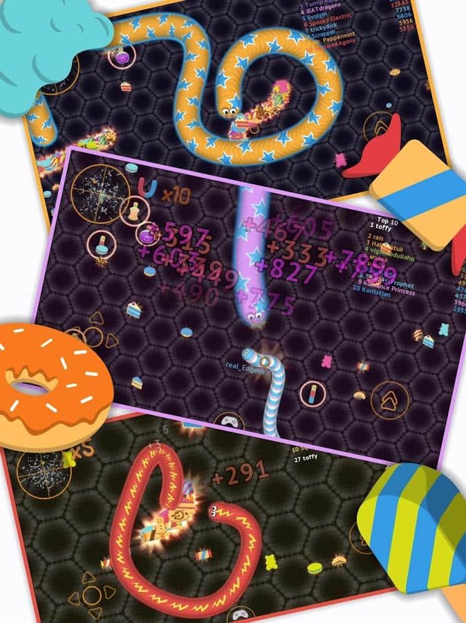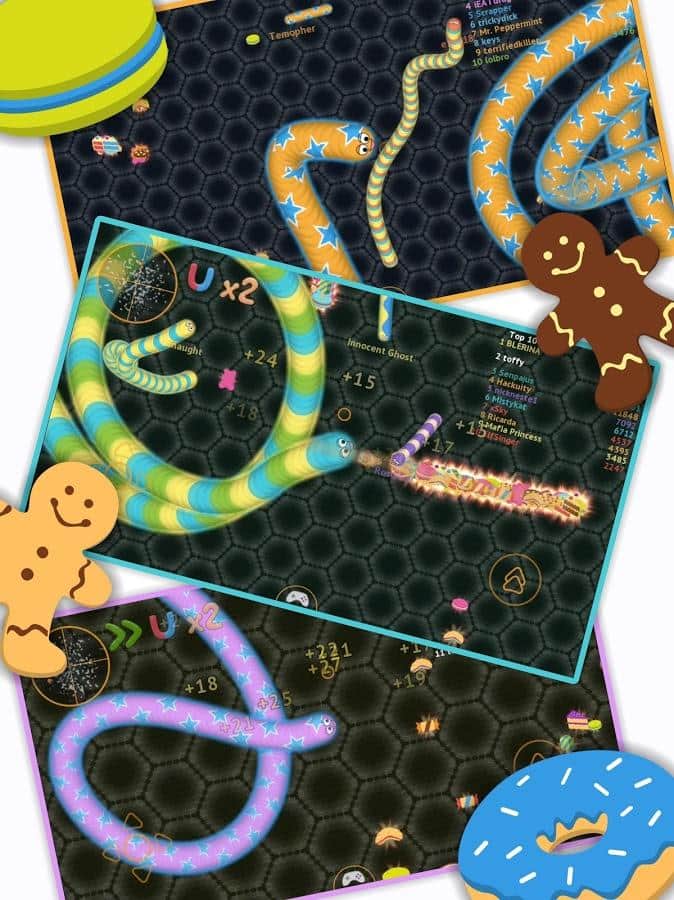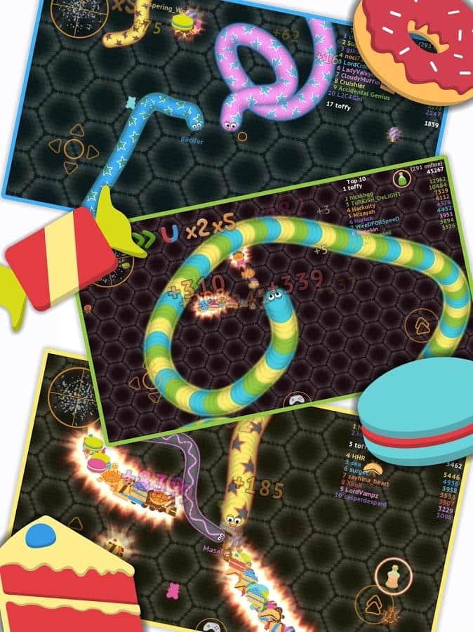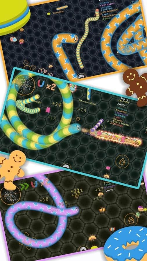 wormate.io - многопользовательская игра на андроид, в которую вы сможете играть со своими друзьями.Простой способ управления червячком позволяет ему быстро наесться сладостей, пирожных и пончиков, тем самым ощутимо прибавляя в весе. Интерес к игре возрастает, когда пользователь сбивает с пути других игроков, заставляя ударяться их в своего червяка. Незатейливый, но понятный интерфейс, азарт от прохождения множества различных по сложности уровней делают игру захватывающей и интересной.