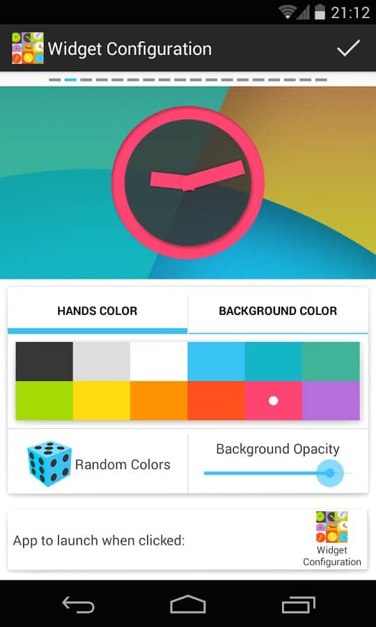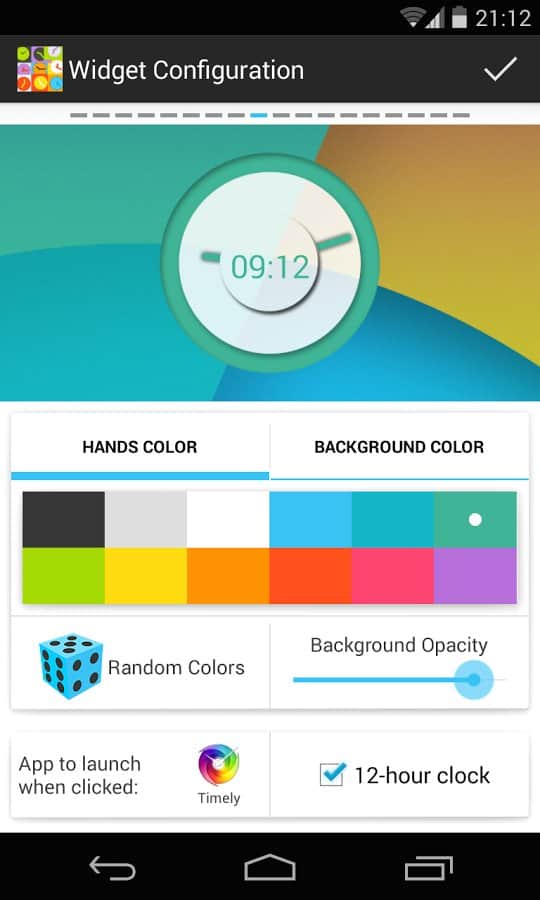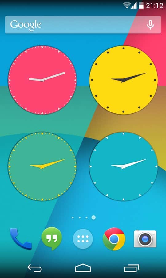 Wow KitKat Clock Widgets - разнообразьте экран своего андроид устройства замечательной коллекцией аналоговых часов в стиле KitKat. Выберите один из 18 предлагаемых вариантов круглых часов, определитесь с цветом и насыщенностью палитры не только фона, но и стрелок и наслаждайтесь видом неординарных часиков, поглядывая на время. Приятного пользования!