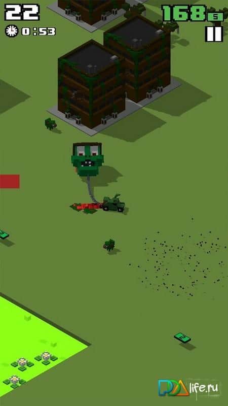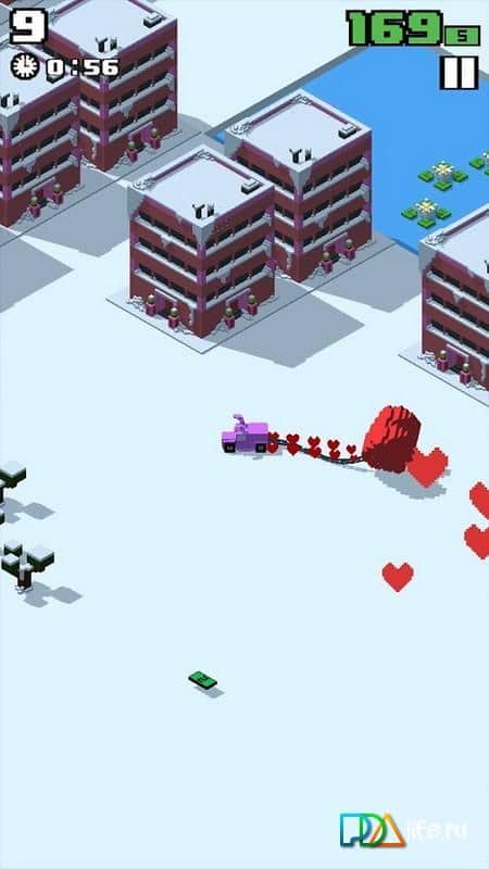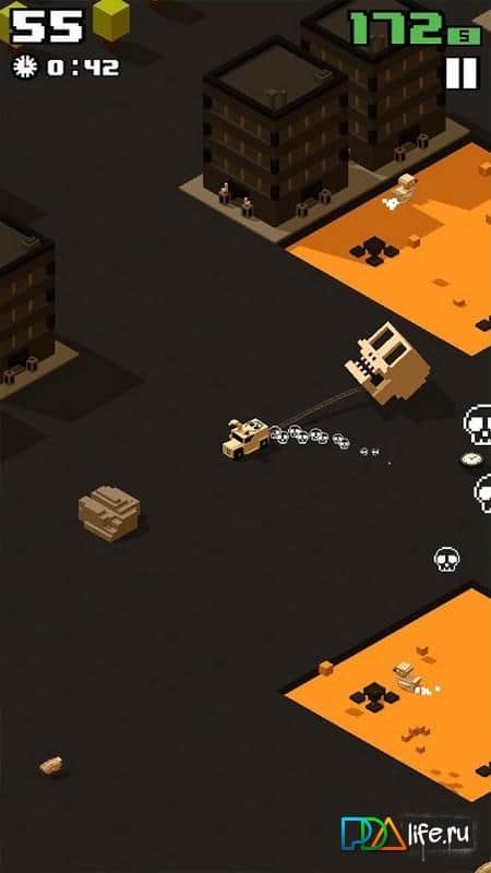 Wrecky Ball – веселая игра на андроид, в которой вам предстоит управлять машиной с привязанным к ней огромным мячом. Вашей главной задачей в этой игре будет гонять по огромному миру и разрушать все здания на своем пути, с помощью мяча. Разрушайте все что видите и собирайте деньги, но остерегайтесь задеть овец, пасущихся на лугу мячом, ели вы все же это сделаете с вас снимутся очки. Повеселитесь от души, играя в эту игру и зарабатывая достаточное количество очков, чтобы посоревноваться со своими друзьями. На собранные деньги вы сможете приобрести новые автомобили и открыть новые миры. В игре случайным образом генерируют среды, так что приготовьтесь к непредсказуемым приключениям в пиксельном мире.