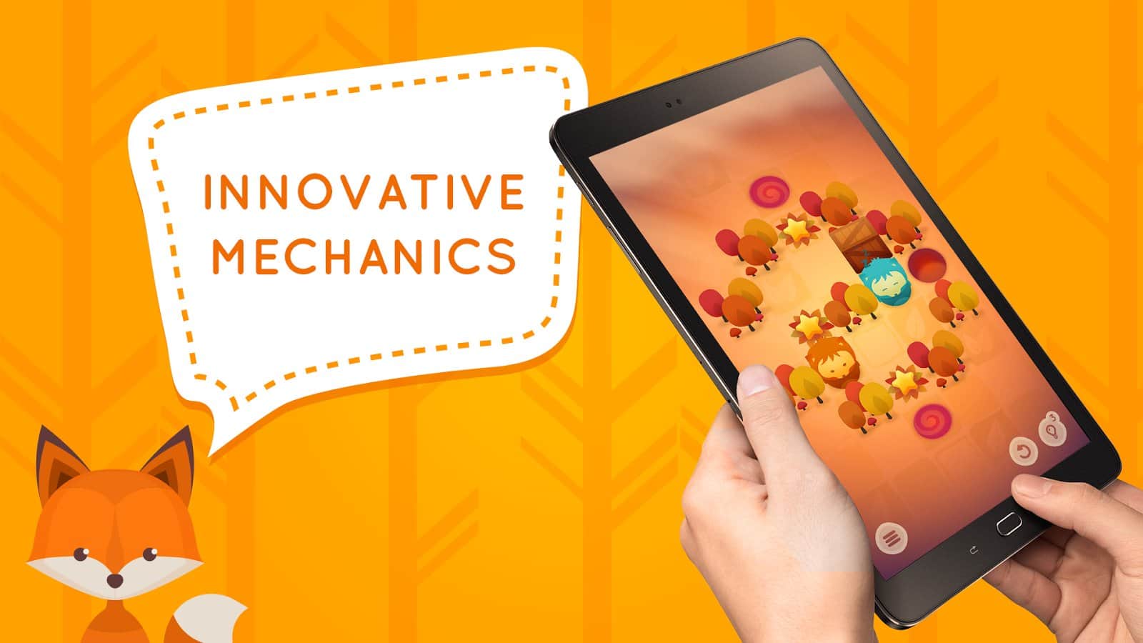 WTF?! Relaxing Brain Game - красочная игра головоломка в основе геймплея которой лежит популярная игровая механика позаимствованная у Сокобан. Однако создатели WTF?! Relaxing Brain Game решили заметно изменить оригинальную версию Сокобан и помимо добавления сюжета, а вам предстоит помочь забавным лисятам добраться до дома, при этом избегая всевозможные ловушки, поработали над графической составляющей, а так же создали уникальные уровни и локации. Главной особенностью WTF?! Relaxing Brain Game является ее сложность, как уже говорилось локации представляют из себя не просто коридоры, а еще и напичканы врагами и ловушками, что без сомнения придает игре особый стиль.