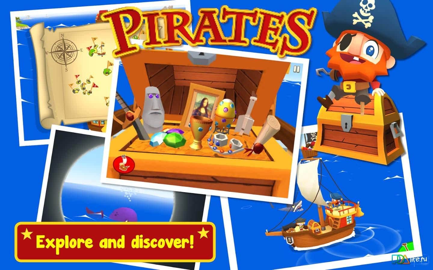 Wungi Pirates - игра на аndroid, где вы отправитесь в захватывающее приключение вместе с пиратом. Вам предстоит бороздить морские просторы на своем корабле в поисках сокровищ. Высаживайтесь на попавшихся островах и где расположены метки капайте и ищите сокровища. Игра создана специально для детей дошкольного возраста где они не только будут искать сокровища, а также управлять кораблем и стрелять из пушки по морским чудовищам.
