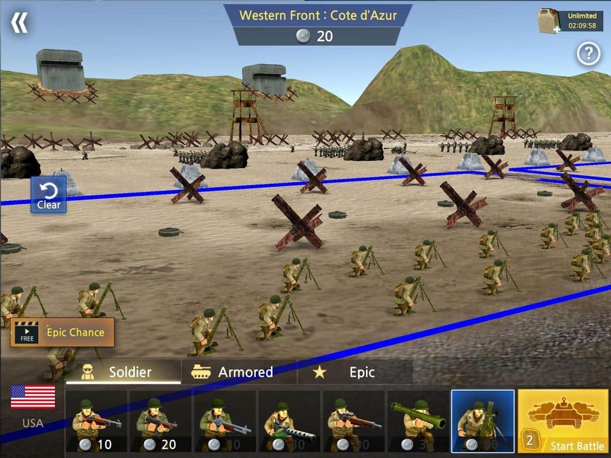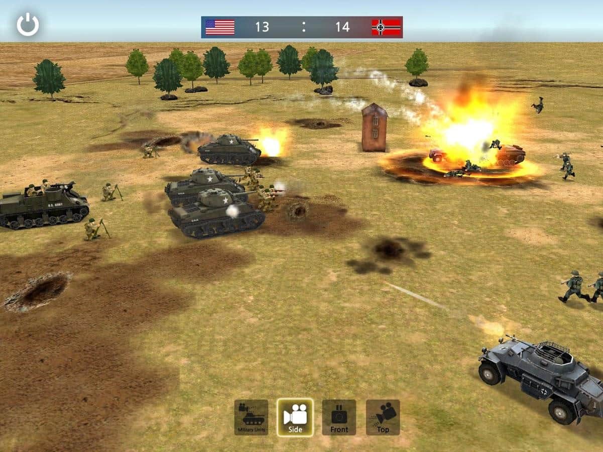 WW2 Battle Front Simulator – реалистичный симулятор на андроид, который перенесете вас на поля сражений Второй мировой войны. Симулятор боевого фронта начинает свою историю 22 июня 1941 года на Восточном фронте. Операция «Барбаросса» где Германия ввела огромные войска на территорию СССР. Пройдите свой путь от сражений Ленинграда, Ростова, Москвы до Сталинграда и Германии. Этот симулятор нацелен на то чтобы сделать все бои максимально реалистичными. Играйте в режиме реального времени и мастерски управляйтесь с оружием Второй мировой войны такими как знаменитые танки «Тигр», «Першинг» и «Шерман». В пользовательском режиме игроки могут выбрать на какой стороне будут сражаться США, СССР или Германии.