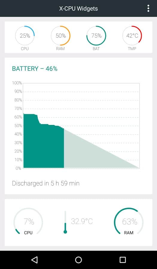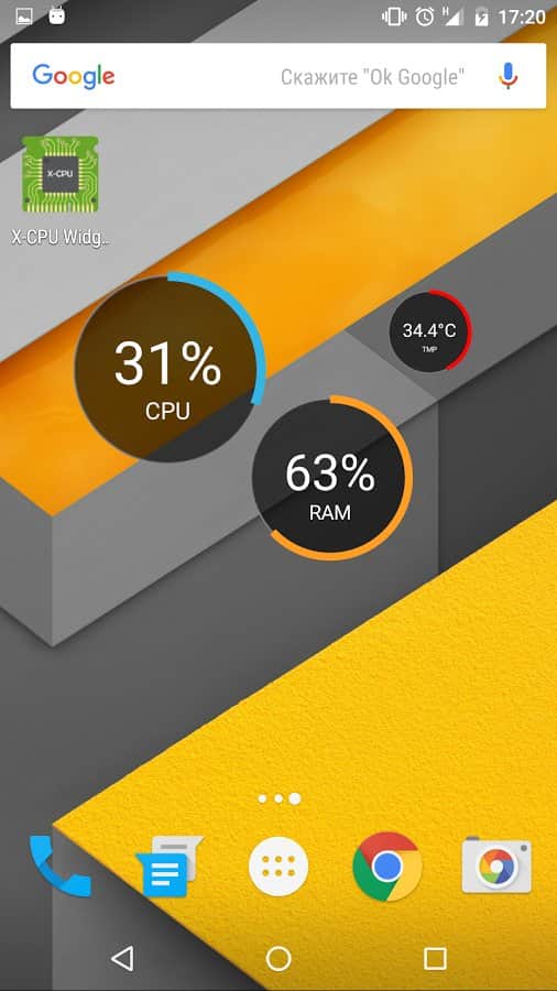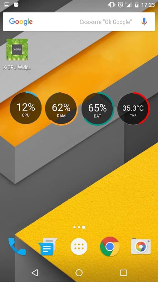 X-CPU - Circle Widgets - Выводите информацию о своем устройстве прямо на экран, при помощи очень красивых виджетов. Это простое приложение, которое соберет основную информацию о вашем устройстве, а так же покажет на сколько у вас забита ОЗУ, какой заряд батареи и как мощно работает процессор. Собрав все эти данные вам предложат добавить на экран пару удобных виджетов, при помощи которых вы сможете сразу смотреть, сколько и каких ресурсов расходует ваш смартфон. Виджеты довольно привлекательные и имеют простой интерфейс.