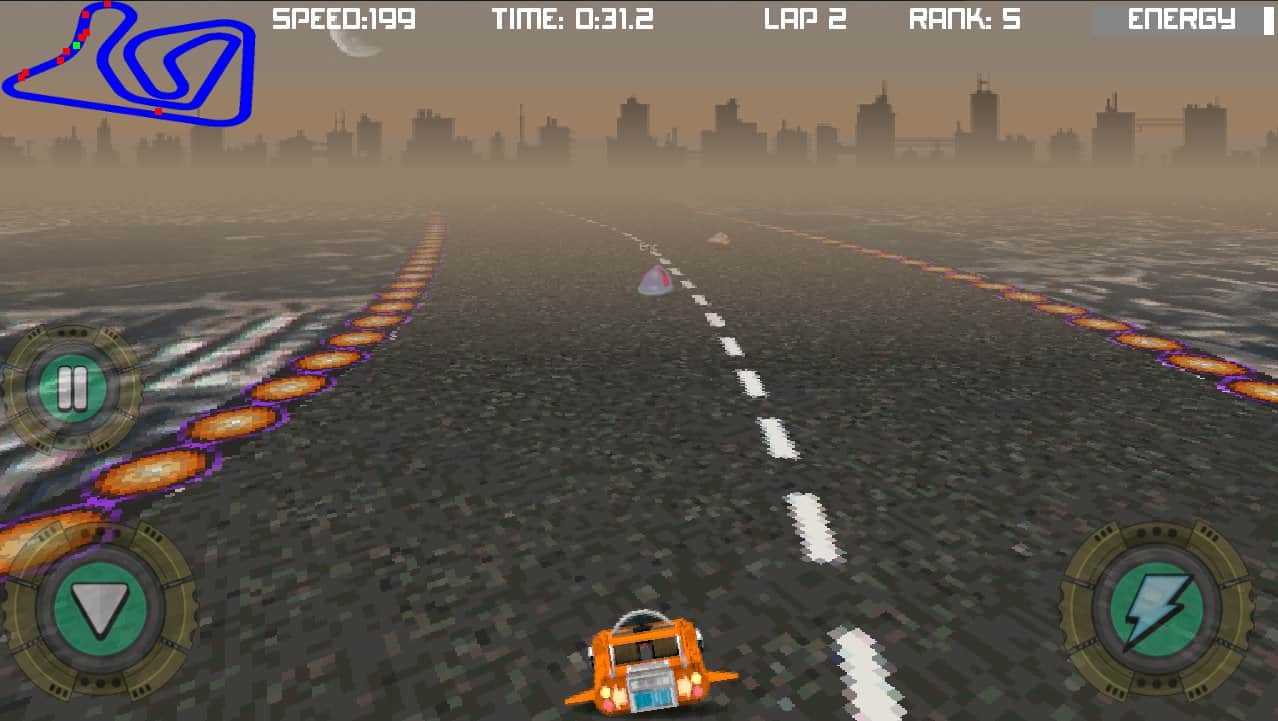 В период развития игровых автоматов и ранних консолей гонки были популярны на ровне с аркадами, а может быть и больше. Причем большая часть гоночных игр была выполнена в схожем стиле и отличались лишь в незначительных моментах. Xenorace - футуристическая гонка выполненная в лучших традициях прошлых лет, характерная 16-битная графика и соответствующее звуковое сопровождение позволит вам с головой окунуться в атмосферу конца 80-х годов. При этом разработчики постарались сделать полноценный игровой проект с широким функционалом. 14 различных треков и 8 неудержимых автомобилей, 5 уровней сложности и 3 режима игры, возможность изменения управления и различные виды камеры, а так же возможность игры вдвоем через Bluetooth.