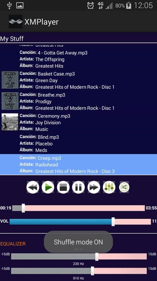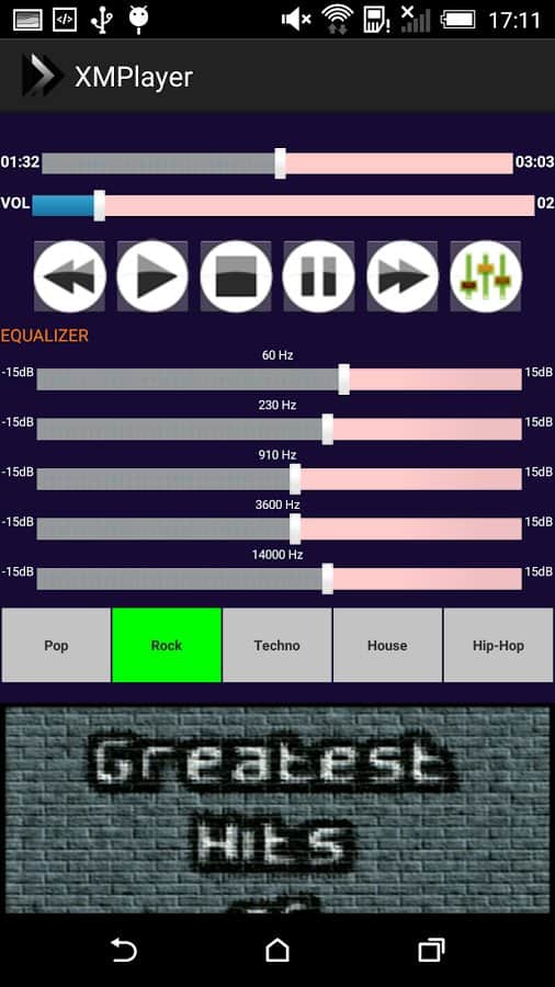 XMPlayer Audio Player – функциональный плеер с поддержкой таких аудио файлов как: MP3, WAV, AMR. Есть возможность поиска необходимой композиции по названию песни или исполнителю, проигрывание в фоновом режиме, присутствует встроенный осциллограф и многополосный эквалайзер, настроив диапазоны и звук которого вы можете выбрать следующие направления в музыке Pop, Рок, Техно, Дом, Хип-хоп.