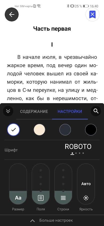 Я читаю - Чтение книг в бумажном варианте сейчас не актуально, наступило время скачать приложение с возможностью читать книги через телефон! Выберите из большого каталога книг определенные книги и начните их чтение, перед этим детально настроив отображение внешнего вида текста. Определитесь с шрифтом, размером букв, их цветом и самой подложкой. Добавляйте интересные книжки в избранное, а затем возвращайтесь к ним снова, чтобы продолжить изучение. Вы также можете выделять фрагменты и добавлять их в заметки, а после перечитывать.