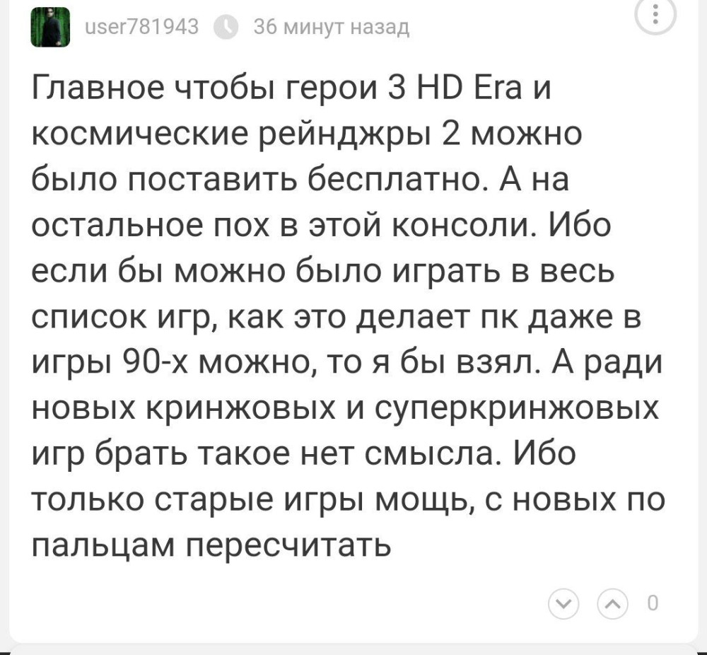 Ну да, человек забавный. Меня больше забавляет, как он Героев 3 и Космических Рейнджеров ждёт на Switch 2)))