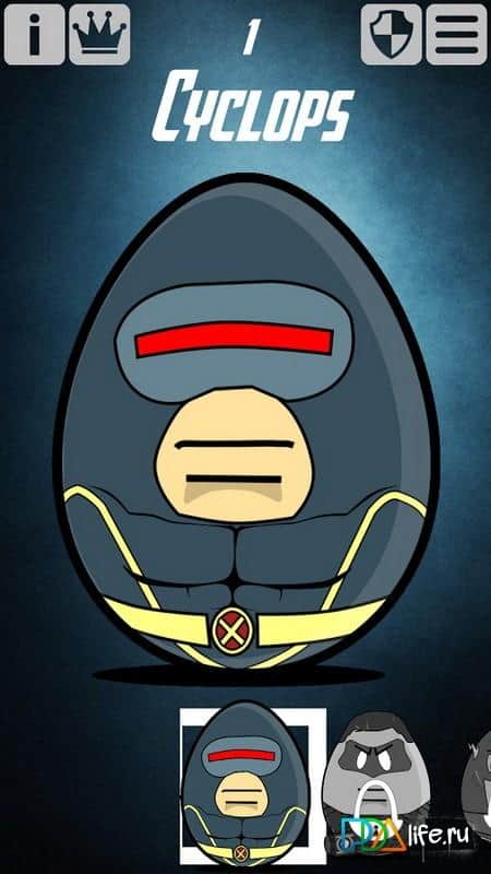 Яйцо-3 Супергерои - продолжение интересной игры, в которой вам предстоит разбивать яйца. В первой версии вам были представлены 20 различных супергероев таких как: Циклоп, Флэш, Зеленый Фонарь, Спайдермен, Капитан Америка, Зверь, Сорвиголова, Халк, Росомаха и многие другие герои, которых вам предстоит побеждать. Каждый герой-яйцо имеет свои индивидуальные особенности, и к каждому нужен свой подход, чтобы разбить его. К первым известным героям имеются подсказки, а вот чтобы разбить остальные яйца вам придется изрядно поломать голову. Участвуйте в этой игре и попробуйте занять свое место в таблице лидеров.