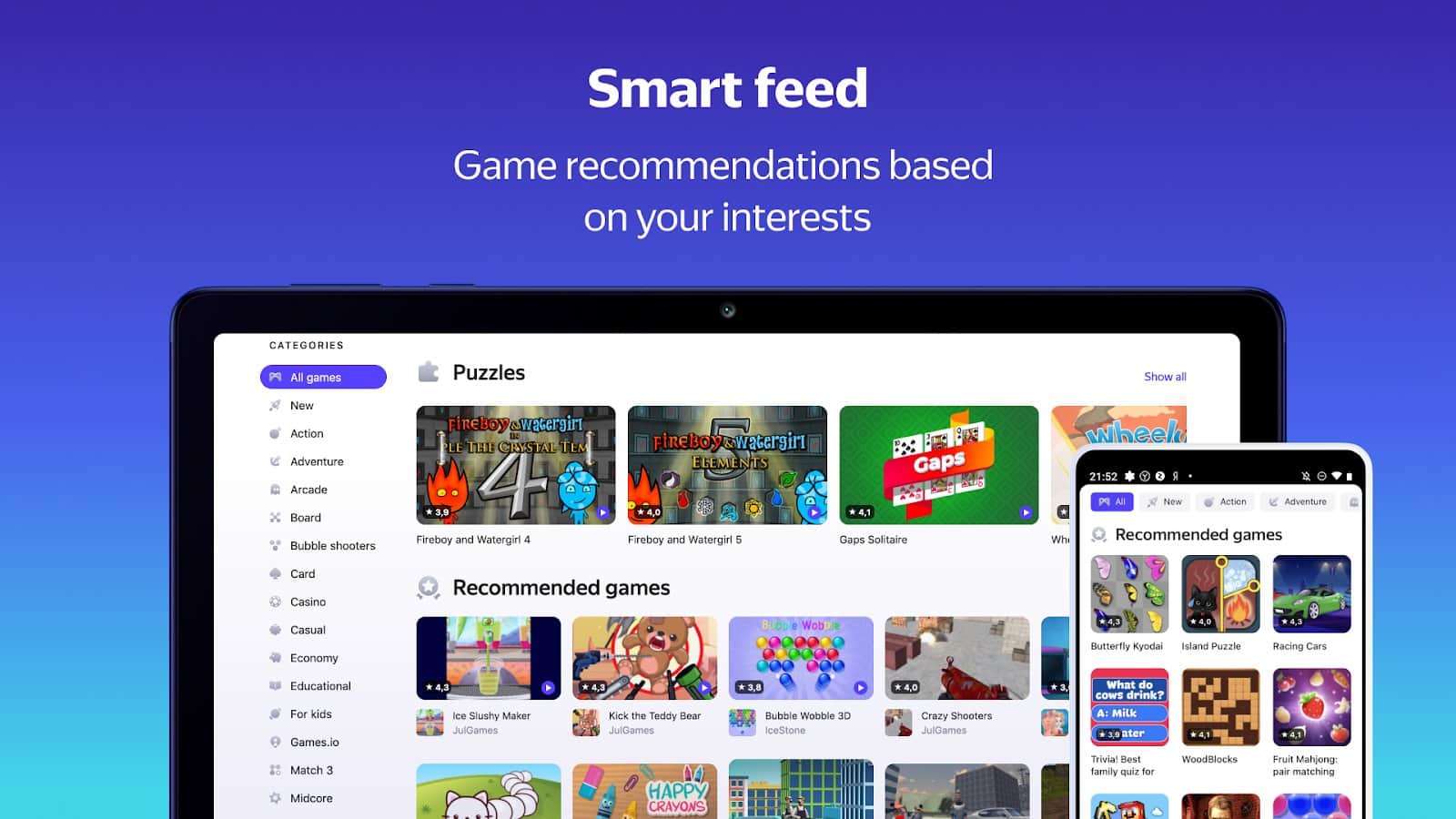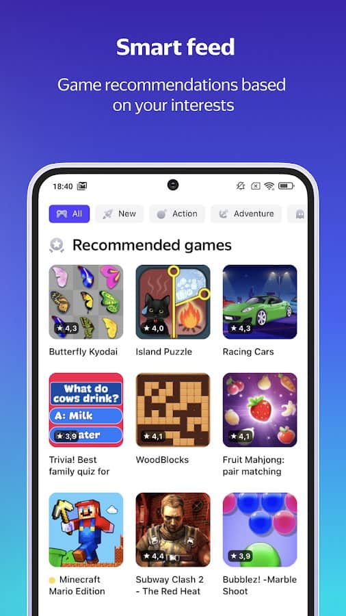 С приложением "Яндекс.Игры" вам не нужно каждый раз скачивать новую игру, чтобы провести свое свободное время с пользой. Достаточно одной бесплатной программы, в которой есть игры даже оффлайн.