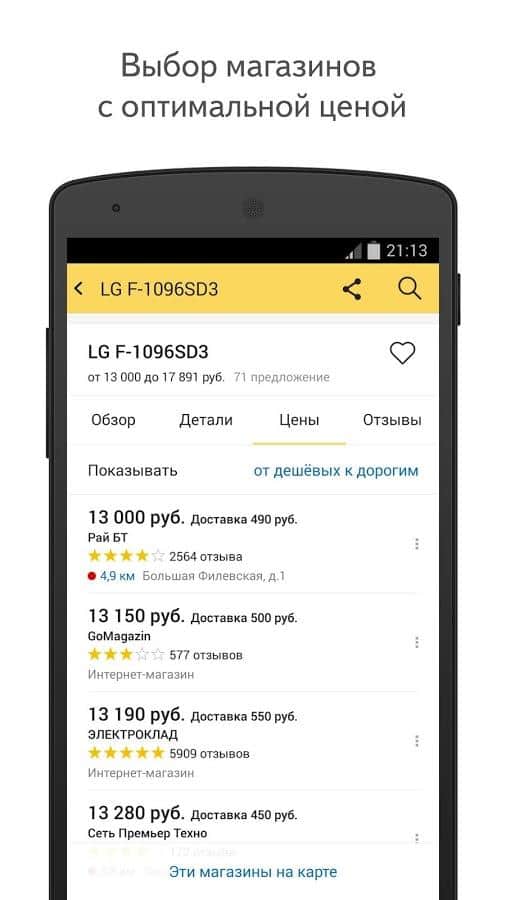 Яндекс.Цены - это отличное приложение, где собрано более 25 000 магазинов. Просматривайте цены на один товар в разных магазинах, ищите похожие предметы по фото или штрихкоду, получайте моментальные уведомления о новых акциях, просматривайте положительные или негативные отзывы, задавайте интересующие вопросы, смотрите подробные характеристики, устанавливайте детальные фильтры на поиск, добавляйте в избранное то, что понравилось и упростите процесс покупок, не думая где можно найти тот или иной товар.