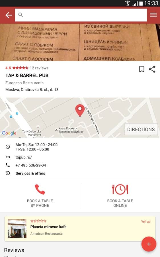 Комментарии к YELL.RU на Android