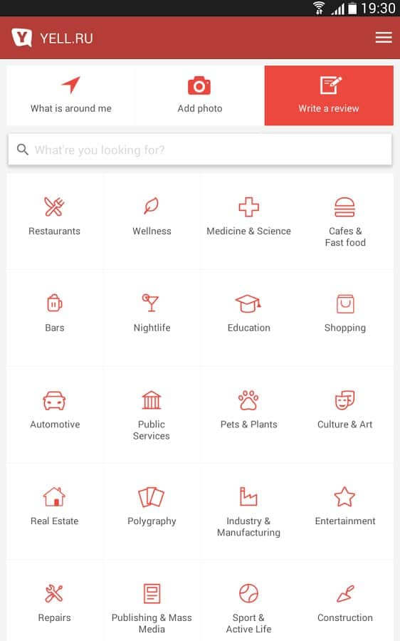 YELL.RU – если вы любите путешествовать или просто ищите место, где можно было бы неплохо отдохнуть, то данное приложение именно то, что вам нужно. YELL.RU содержит огромную базу данных, представленную по категориям (авто, клубы, медицина, культура и искусство, государство и общество, домашние животные и т. д.), с указанием точного адреса, телефона, местоположения на карте, а так же отзывов о том или ином заведении. Звоните по указанным номерам, не выходя из самой программы, прикрепляйте собственные фотографии и оставляйте отзывы. Приятного время провождения!
