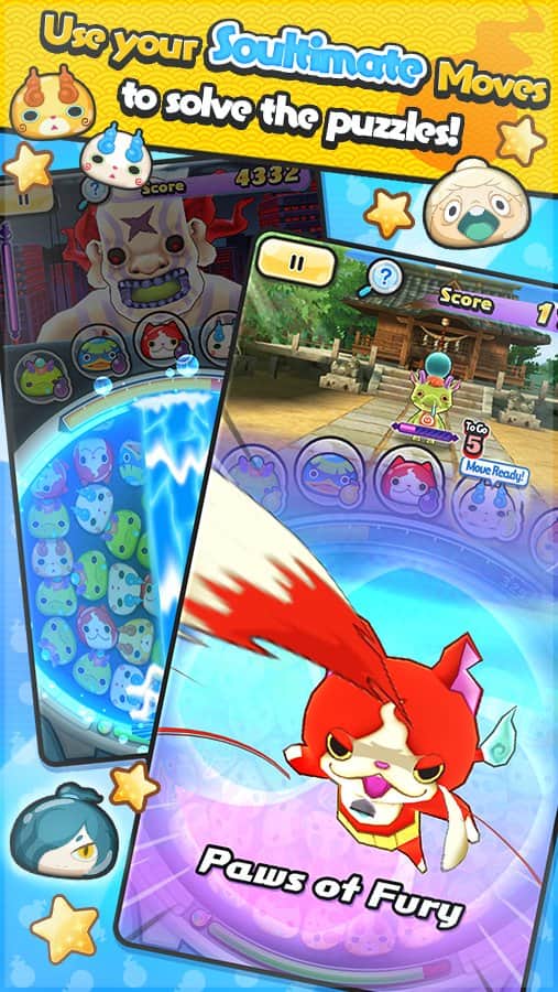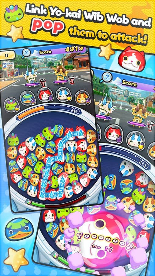 YO-KAI WATCH Wibble Wobble – увлекательная игра из жанра три в ряд на андроид. В этой игре вы будете устраивать бои с полюбившимися вам йо-каи и стараться быстрее противника собрать цепочку из маленьких виб-вобов. Соединяйте питомцев с помощью одного прикосновения пальца к экрану и лопайте их, тем самым получая силу для атаки. Скользящим движением пальца соединяйте виб-вобов и наблюдайте за тем как они увеличиваются в размерах и заполняют собой весь экран. Чем длиннее будет цепочка из питомцев, тем больше вы сможете нанести урон своем сопернику. Проходите все миссии игры и зарабатывайте награды участвуя во всех событиях.