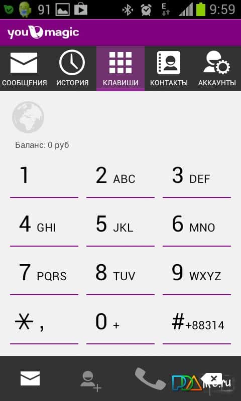 Что для этого нужно? Все просто! Вам необходимо загрузить приложение YouMagic Softphone на свое Android-устройство, пройти быструю регистрацию при первой загрузке или через окно "Учетные записи" – и получить международный номер с кодом 88314.