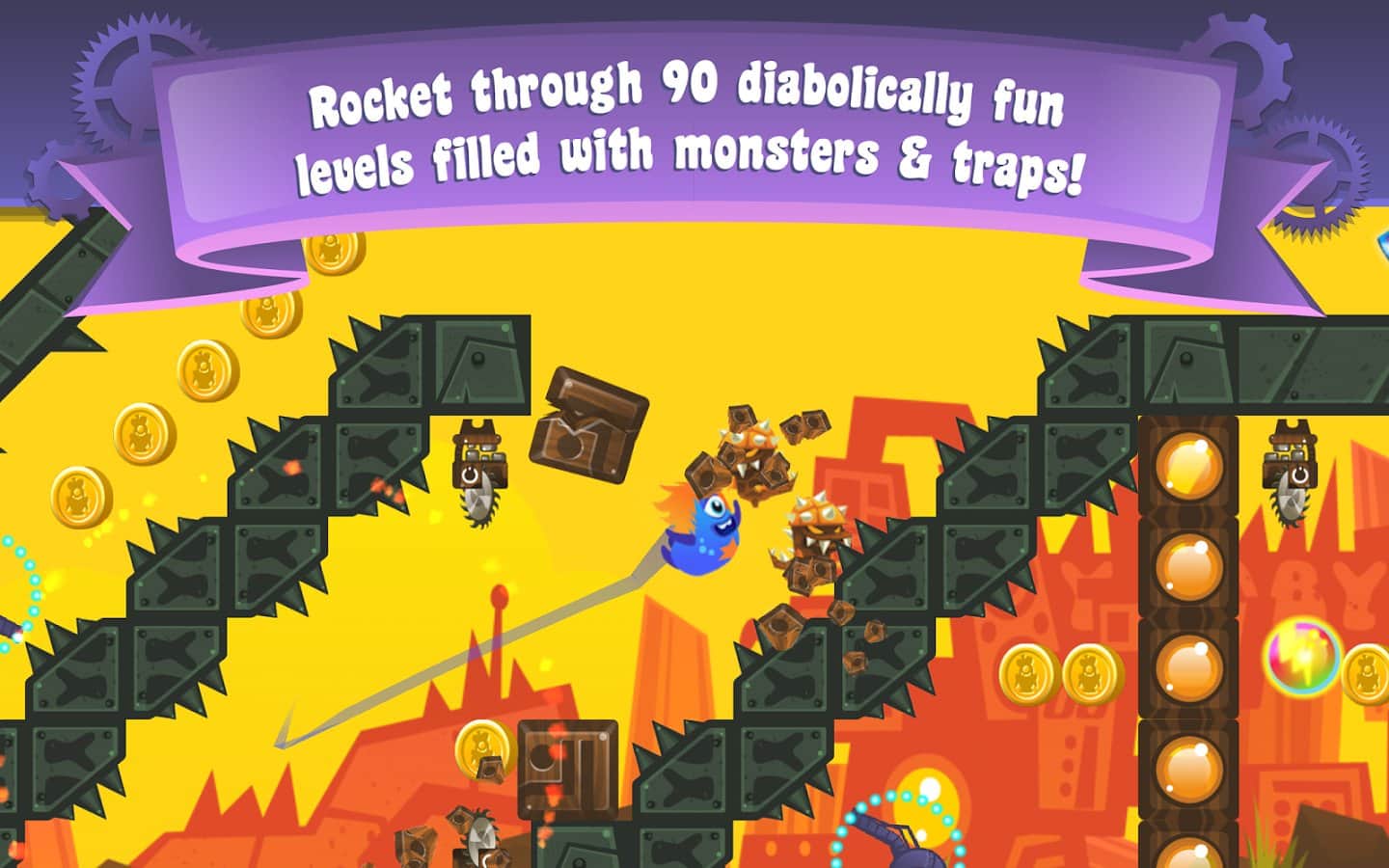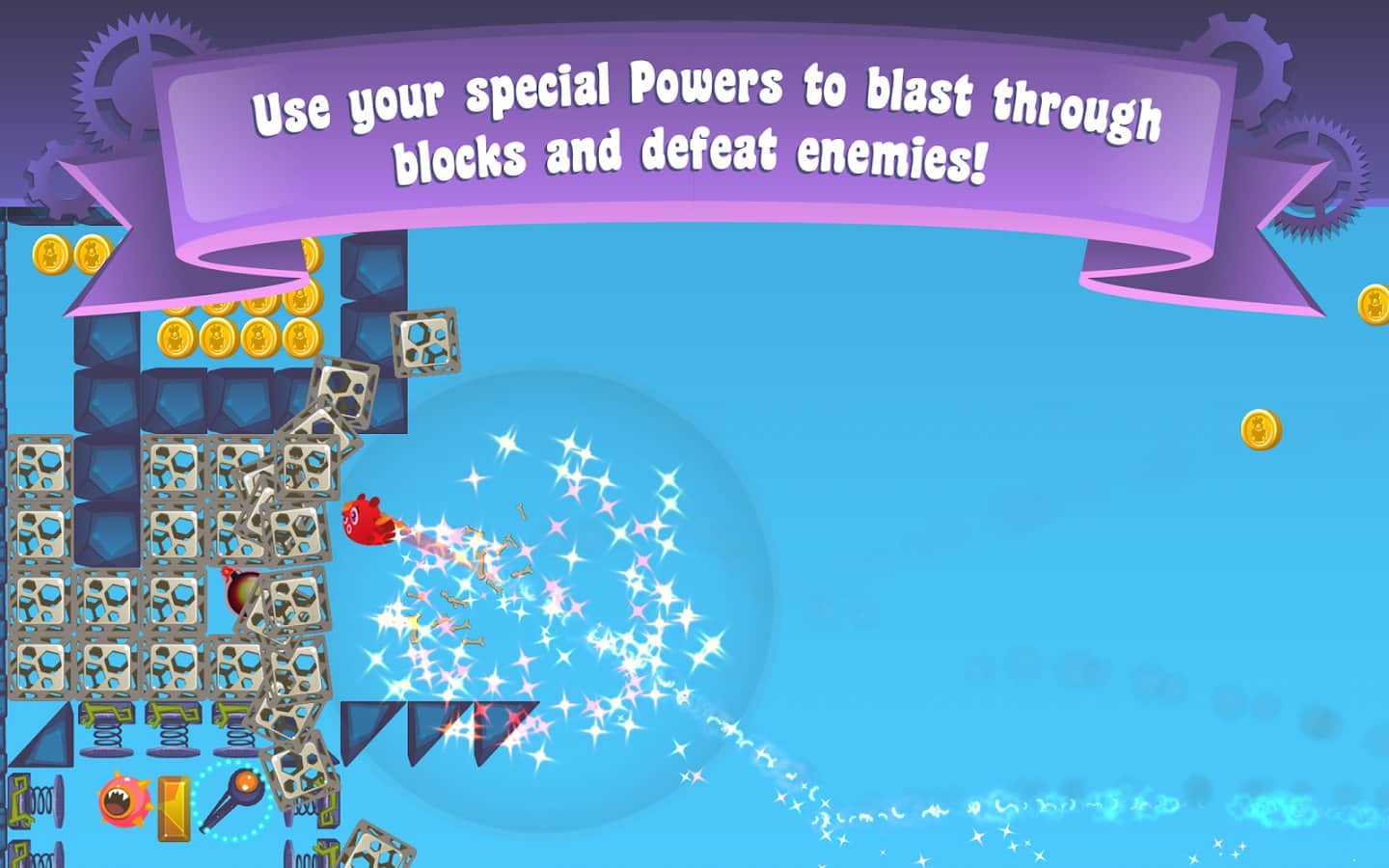 Yumby Smash - аркада-платформер о приключениях маленького монстрика Юмби. Вас ждут 3 ярких мира и в общей сложности 90 уровней в режиме кампании. Кроме свободного путешествия на вашем пути встретятся разные ловушки и опасности, подстроенные полковником Крампет!Очень забавная игрушка и красочные локации!