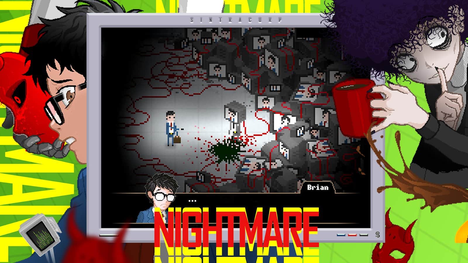 Yuppie Psycho - В таинственной и опасной обстановке, Брайан Пастернак оказывается на первом рабочем дне в Синтракорпе, одной из самых влиятельных компаний в мире. Ничего не предвещало беды, когда он подписывал контракт о приеме на работу, но теперь он понимает, что его ждет нечто гораздо более захватывающее и опасное, чем просто офисная рутина. Столкнувшись с своим первым заданием, Брайан осознает, что его работа состоит в охоте на "ведьму", тайную и безжалостную силу, которая хранит ключи к успеху Синтракорпа. Неуверенный и неподготовленный, Пастернак пускается в рейтинговую битву с этой таинственной сущностью, понимая, что его выживание и будущее зависят от его способностей справиться с этой опасностью. В своем путешествии Пастернак встречает самых разнообразных персонажей, окруженных тайнами и загадками, которые только углубляют его затянувшееся погружение в мир Синтракорпа. Он встречает страшные существа и раскрывает шокирующие секреты, скрытые за фасадом блестящих стеклянных офисов.
