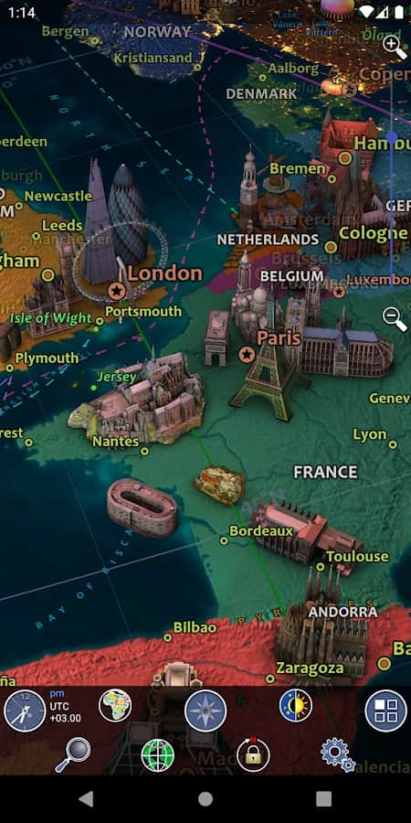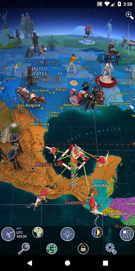 Земля 3D - Атлас мира - Хотите детальнее узнать нашу планету и исследовать каждый народ детальнее? В этом приложении есть все необходимое: фотографии городов и стран, мир людей и животных, растений, звездное небо, часовые пояса, регулярная смена ночей и дней, прогноз погоды, подробная информация о каждом участке на карте и другое. Много читайте, познавайте новые факты и историю, просматривайте как одевается народ, самые популярные здания и национальную кухню. Весь процесс происходит на 3D карте, поэтому информация доступна сразу и быстро.