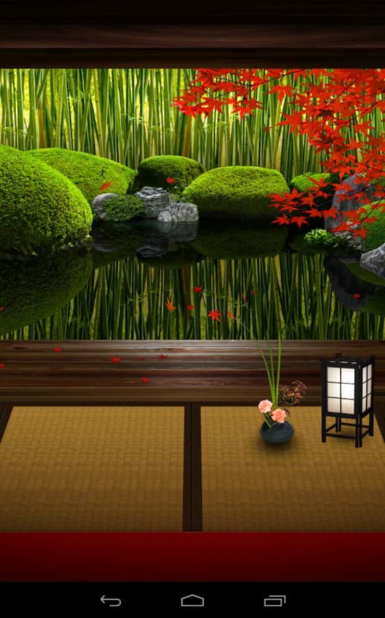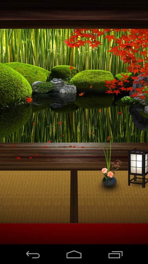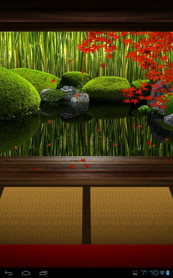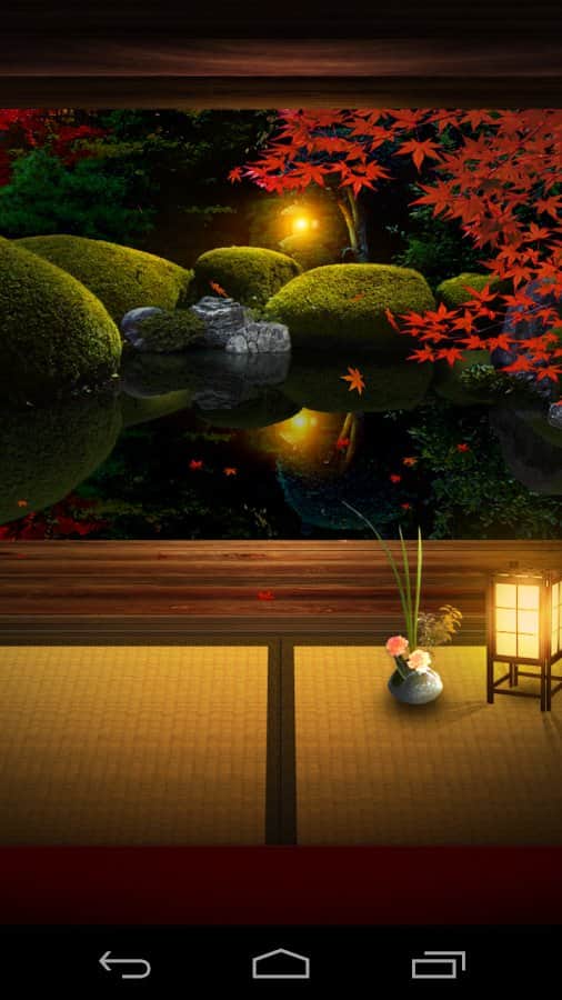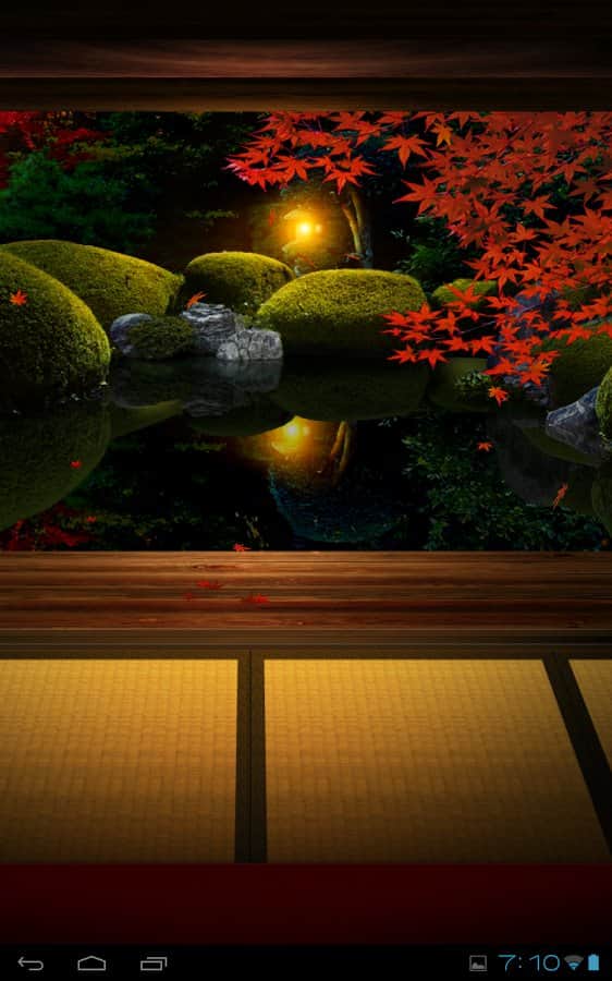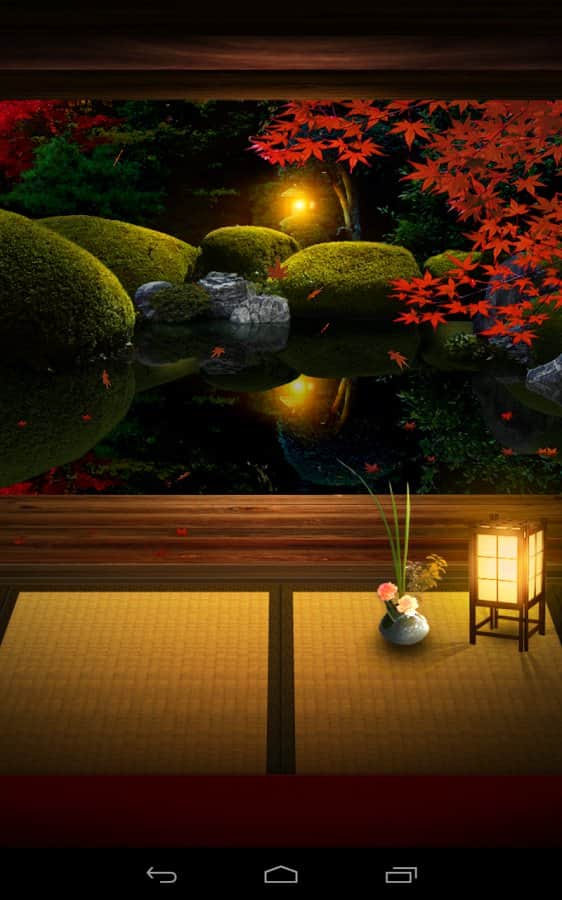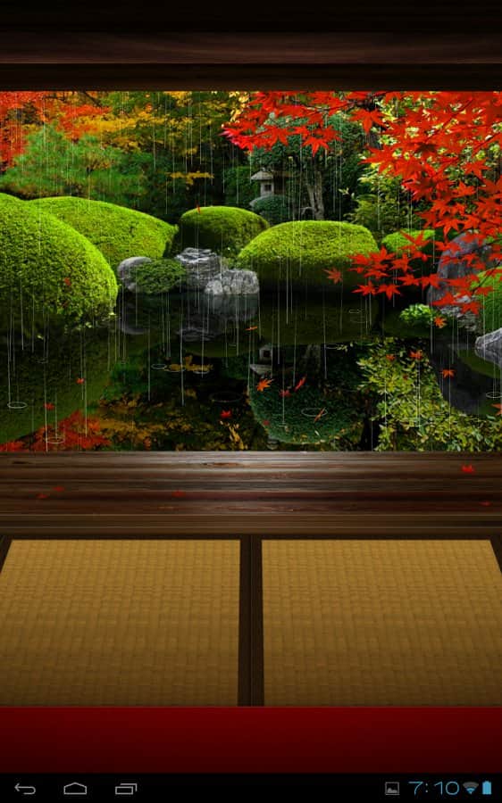 Zen Garden -Fall- LW – красочные живые обои для андроид устройств с красивой осенью в японском саду. Здесь вы услышите звуки капель дождя, песнь колокольчика от дуновения ветра и многое другое. Почувствуйте энергию Ки. Прикоснитесь к вечности!