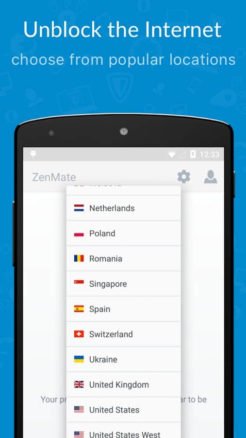 ZenMate VPN Security & Privacy – данное приложение на андроид представляет услуги виртуальной частной сети, которая обеспечивает вам анонимность и безопасность во время серфинга в сети интернет по защищенному, зашифрованному каналу. С помощью данного приложения будут станут доступны сайты запрещенные в вашей стране, показывая ваше место положения как жителя другого государства.