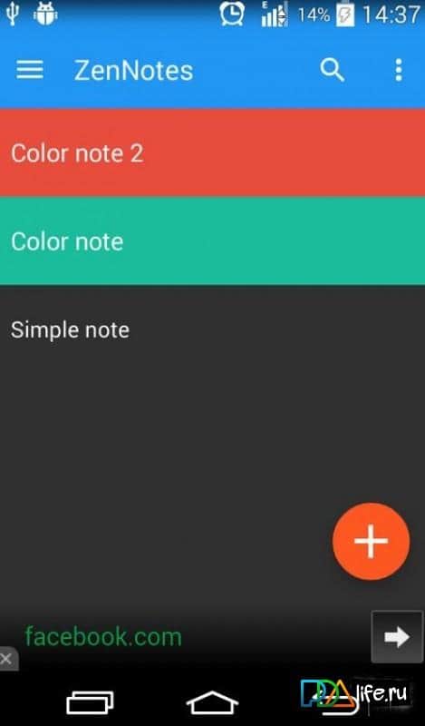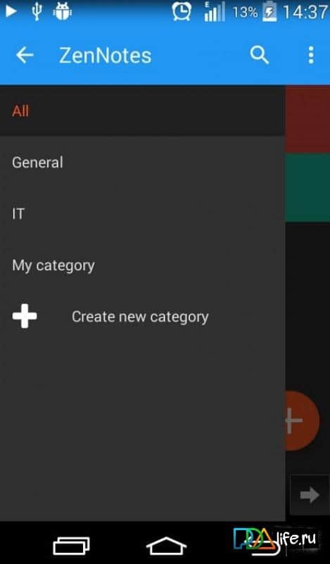 ZenNotes – простое создание и редактирование заметок, ваших мыслей, идей и других примечаний. Удобно, просто и легко, интерфаз приятный и понятный, разбираться в нём не придётся. Всё расположено на своих местах и создание заметки не займёт у вас много времени. При необходимости можно менять цветовую гамму заметок. Создать новые категории по видам заметок, так будет проще и удобнее разбираться в большом количестве записей. При необходимости можно защищать ваши записи паролем, чтобы ни кто крове вас не смог их прочитать. В приложении присутствует виджет для ещё более быстрой работы с приложением.