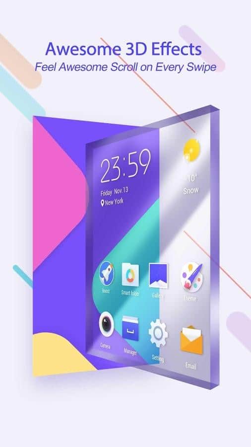 ZERO - маленький и довольно таки шустрый лаунчер. Кроме того, это весьма симпатичное приложение имеет 3D-движок с удивительными 3D-эффектами! Одной из особенностей является скорость - 0,2 секунды до запуска с сохранением 100% памяти. Вам доступны премиум темы бесплатно и навсегда, а также HD-обои и значки. Блокировка экрана осуществляется в одно нажатие - это очень удобно!