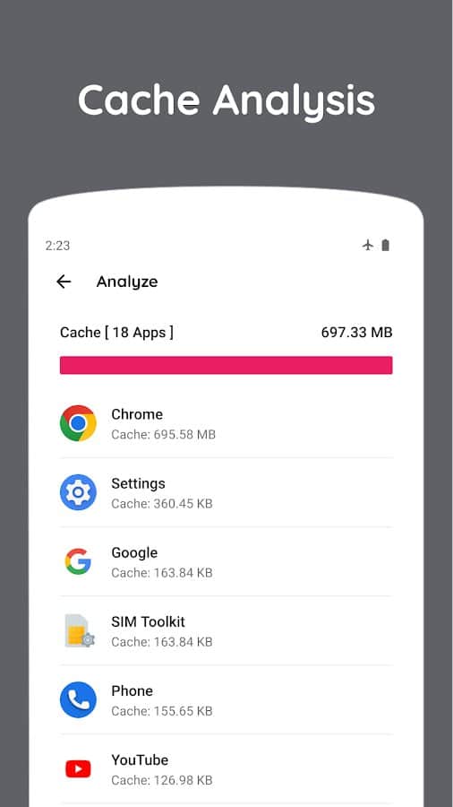 - Анализ кеша приложений, позволяющий вам легко определить, сколько места занимают временные файлы.