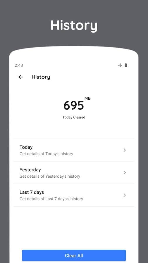 - Просмотр истории использования, чтобы отслеживать, какие приложения используют больше всего кеша.
