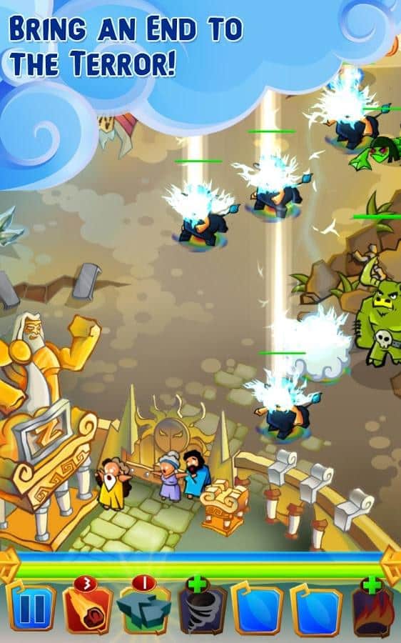 Zeus Defense - в этой стратегии великому Зевсу, богу Олимпии, понадобится ваша помощь. Восставшие боги уничтожают все, что попадается, и в том числе людей, которые поклоняются богам. Воспользуйтесь силой Зевса, а также разными стихиями, чтобы справиться с нашествием богов: