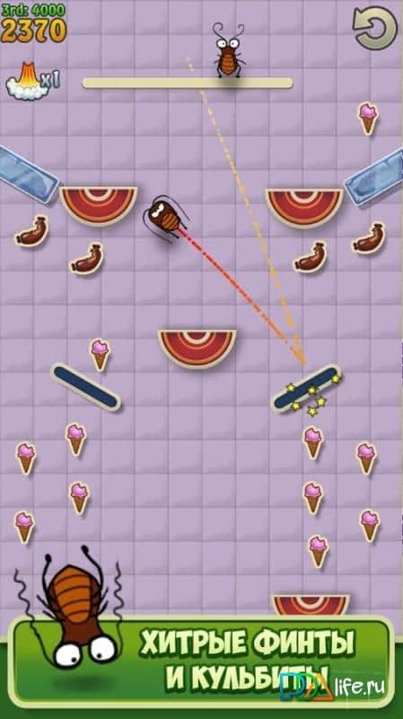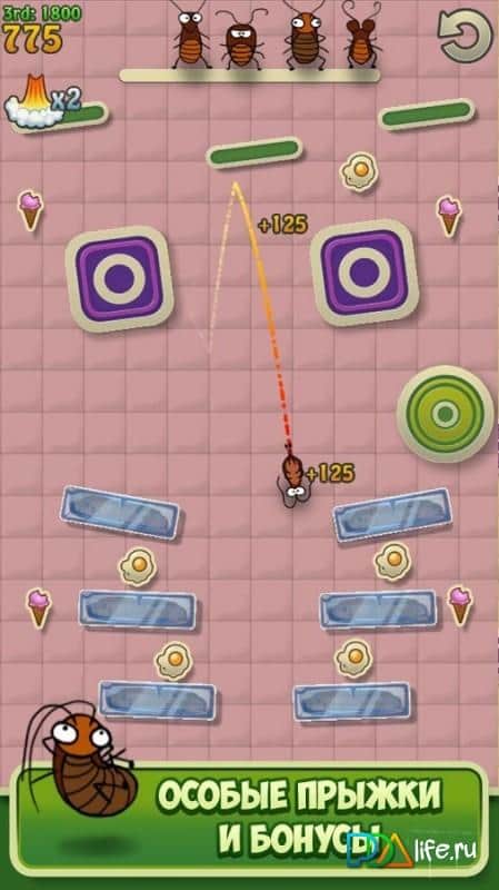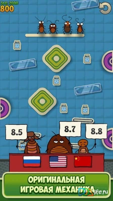 Жуки-Прыгуны - динамичная аркада для Андроид с увлекательным геймплеев, в которой вам предстоит взять под свое начало команду жуков и привести их к победе на всемирных соревнованиях по тараканьим прыжкам. Да вот такой вот необычный подход. Вас ожидают более 50 разнообразных уровней, представляющие из себя локации заполненные различными препятствиями. Ваша задача отправить своего подопечного в полет таким образом чтобы он столкнулся с максимальным количеством предметов раскиданных по локации, тем самым набрав побольше очков. При этом не стоит забывать и о различных бонусах и улучшениях, которые помогут вам в выполнении виртуозных виражей. А искушенные зрители и строгое жюри будут оценивать ваши прыжки и выносить вердикт. И так, помогите своей команде одержать победу и взойти на спортивный Олимп, пусть для этого даже придется разбиться в лепешку.