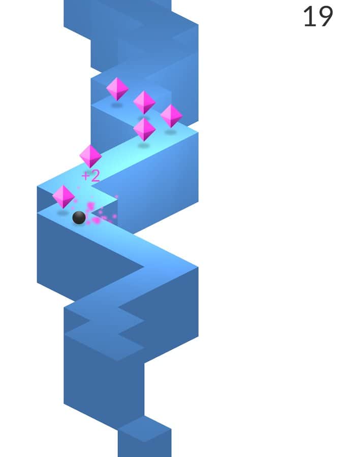 ZigZag - Веселая аркада с красивой графикой. Ваша основная задача во время поворачивать, не нужно выбирать куда, поворачивать, просто нажмите на экран вашего устройства, и шарик повернет. Таким образом вы не должны упасть, и должны собирать фиолетовые ромбики, что бы получать очки, и стать первым. Весь уровень сделан зигзагом. Но будьте бдительны, скорость вашего шарика будет увеличиваться, с каждым пройденным вами метром. Бросьте вызов высоте, и крутым поворотам, и докажите им, что вы круче. Так же, вы можете менять цвет шара, и цвет уровней, что бы вносить разнообразие в свое путешествие.