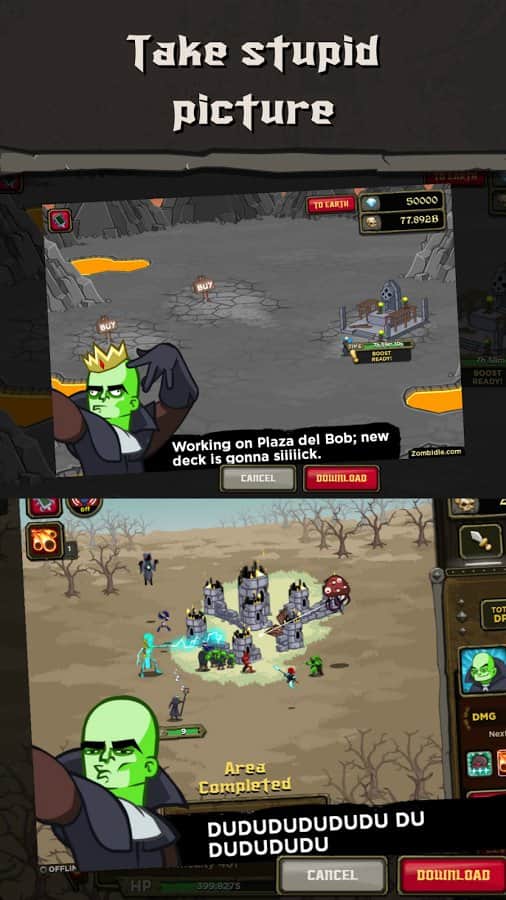 Игры часто ставят геймера на сторону Добра и Света, но в этот раз Zombidle: Kingdom Domination предлагает нападать на разные королевства и грабить для собственного обогащения. Самостоятельно это делать не придется, ведь можно подчинить себе целую орду зомби и других ужасных существ. После этого останется только указать цель и наблюдать за развитием событий, получая собственное вознаграждение. Забирай награбленное и планируй нападение на следующее поселение и королевство, независимо от уровня его укрепления!