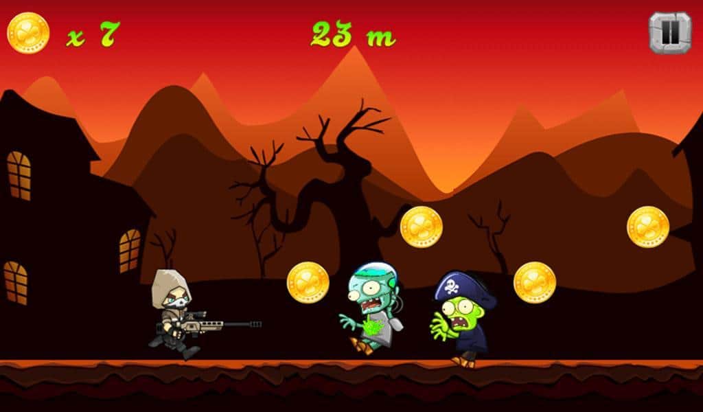 Zombie Attack – проведите своего отважного героя через толпы зомби и применяйте мощное оружие, для борьбы с ними. Выбирайте между четырьмя главными героями, понравившегося вам и прокладывайте себе путь в пост апокалиптическом мире, погрязшем в эпидемии страшного вируса. Управляйте своим героем с помощью нажатий на экран, с левой стороны ваш герой будет прыгать, а с правой персонаж откроет огонь по врагам. Перепрыгивайте через различные препятствия и ловушки, а также собирайте полезные бонусы в виде различных машин. В этой игре вас ждут три неповторимых мира, 4 персонажа и 12 видов зомби с разными способностями.