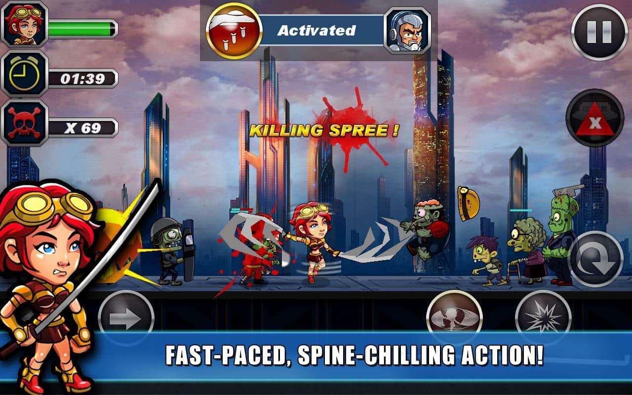 Сама по себе игровая механика достаточно проста, управляя персонажами передвигайтесь по горизонтальным уровням и уничтожайте орды ходячих мертвецов. А в промежутках между прохождением локаций развивайте героев и снаряжайте их для следующего рейда.
