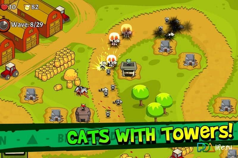Zombie Cat Madness - захватывающая стратегия, в которой вам предстоит отбиваться от котов-зомби. На ваши сельскохозяйственные угодья вторглись зомби, и единственной защитой от них будет ваше оружие и оборонительные башни. Обороняйтесь и отстреливайтесь от зомби, применяя мощное оружие и призывая на помощь подмогу. Вас ждут 4 вида разнообразных башен, каждая со своими особенностями, возможность модернизировать свое оружие во время боя, и несколько игровых режимов, в том числе режим выживания. Получайте награды и черепа и делитесь своими достижениями с друзьями и игроками со всего мира.