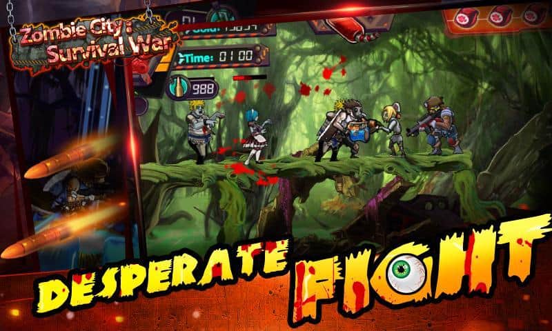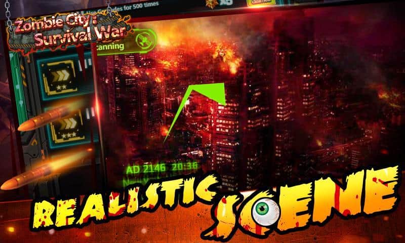 Zombie City:Survival War – игра на андроид, которая перенесет вас в мир после апокалипсиса. Вашей главной задачей в это игре будет уничтожать толпы зомби и спасти человечество от вымирания. После того как зомби-вирус распространился по планете все города заполонили зомби и вашей задачей будет перемещаться от укрытия к укрытию и уничтожать зомби используя различное оружие. Применяйте в бою ножи, пистолеты и бомбы и не дайте врагам победить вас. Перемещайтесь по разнообразным локациям игры и применяйте в бою многочисленные умения героя. Открывайте для себя сундуки с полезными бонусами и усилениями. Играйте в эту игру и получайте максимум удовольствия от отличной графики.