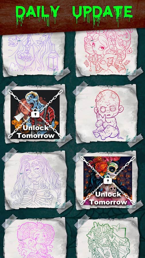 Любите раскрашивать необычные картинки, а также играть в игры про зомби? Тогда вам понравится раскраска Zombie Coloring - Color by Numbers & Art Books для Андроид.