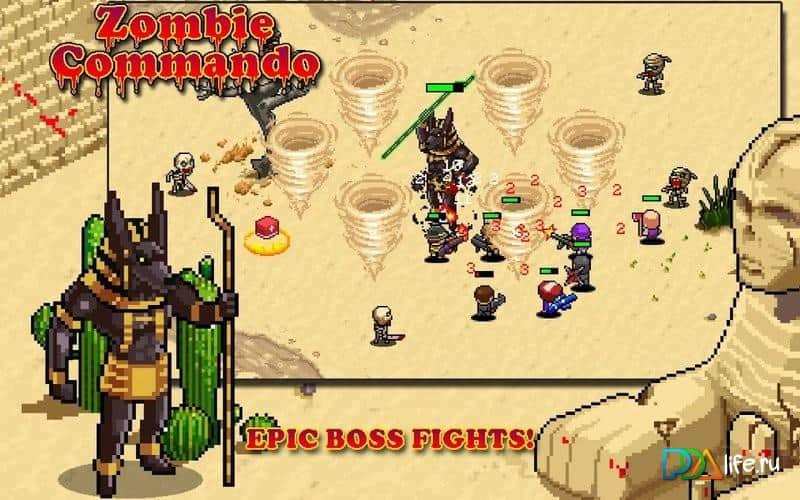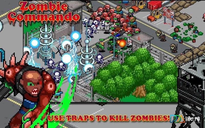 Zombie Commando - Аркада на адроид, выполненная в пиксельном стиле. Ваша главная цель – выжить. Поэтому не стойте на месте, двигайтесь и стреляйте, ведь вас норовят съесть злобные зомби. Вам нужно очистить в игре пятьдесят локаций в пяти различных местах. В конце каждой части вас ждет босс, которого не так уж легко победить. Исследуйте обширный мир и очистите город от зомби.