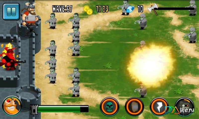 Zombie Defense - Zombie Game - в этой игре на андроид, вам необходимо защищать свой замок от полчищ атакующих зомби. Не подпускайте их к вашему замку, используйте любое доступное для вас оружие для уничтожения ходячих мертвецов и для спасения ваших территорий от надоедливых монстров.