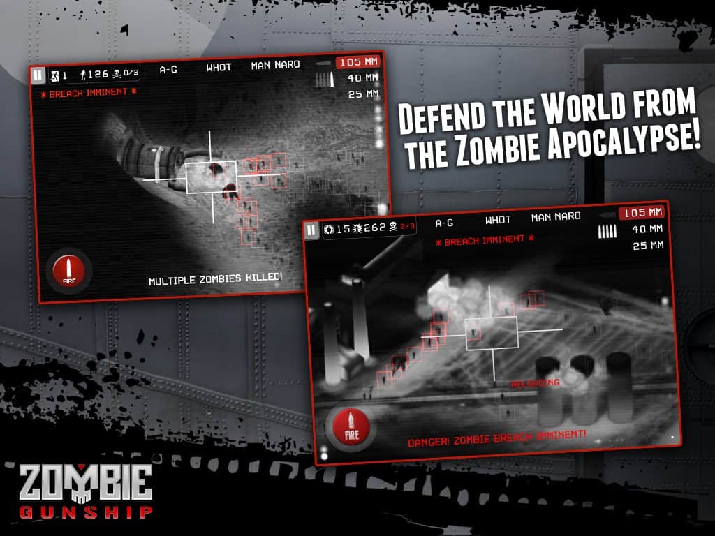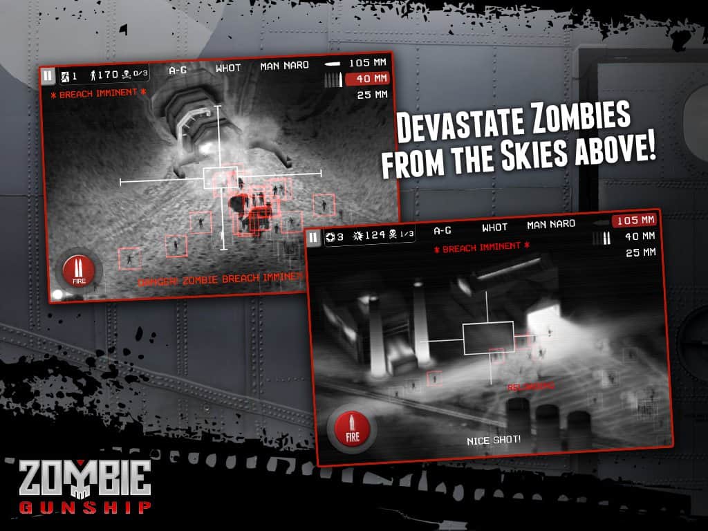 Zombie Gunship – война на андроид, идет ожесточенная война против зомби. Вы в сиденье наводчика тяжеловооруженных AC-130 штурмовиков. Уничтожайте всех тварей на своем пути. Игра проходит в стиле 3D-дисплея ночного видения. Используйте радар, чтобы как можно быстрее обнаружить и устранить угрозы зомби. Вам доступны: 25мм пушки Гатлинга, 40 мм Bofors автоматической пушкой, 105 мм пушка гаубица. Очисти землю от нежити.
