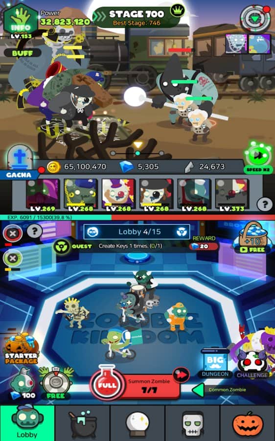 Zombie Kingdom: Zombie Idle Merger RPG Game – легкая игра с забавной графикой, в которой вам предстоит проходить уровни, уничтожая зомби. Скелеты, мутанты и монстры восстают из могил и хаотично передвигаются, ломая и разрушая все, что попадается на пути. Вы можете поработить их и заставить работать на себя. Соберите коллекцию из более чем 30 персонажей, получайте награды и открывайте сундуки с сокровищами, драгоценными камнями и монетами. Прокачивайте способности и становитесь сильнее. Игра очень забавная и яркая.