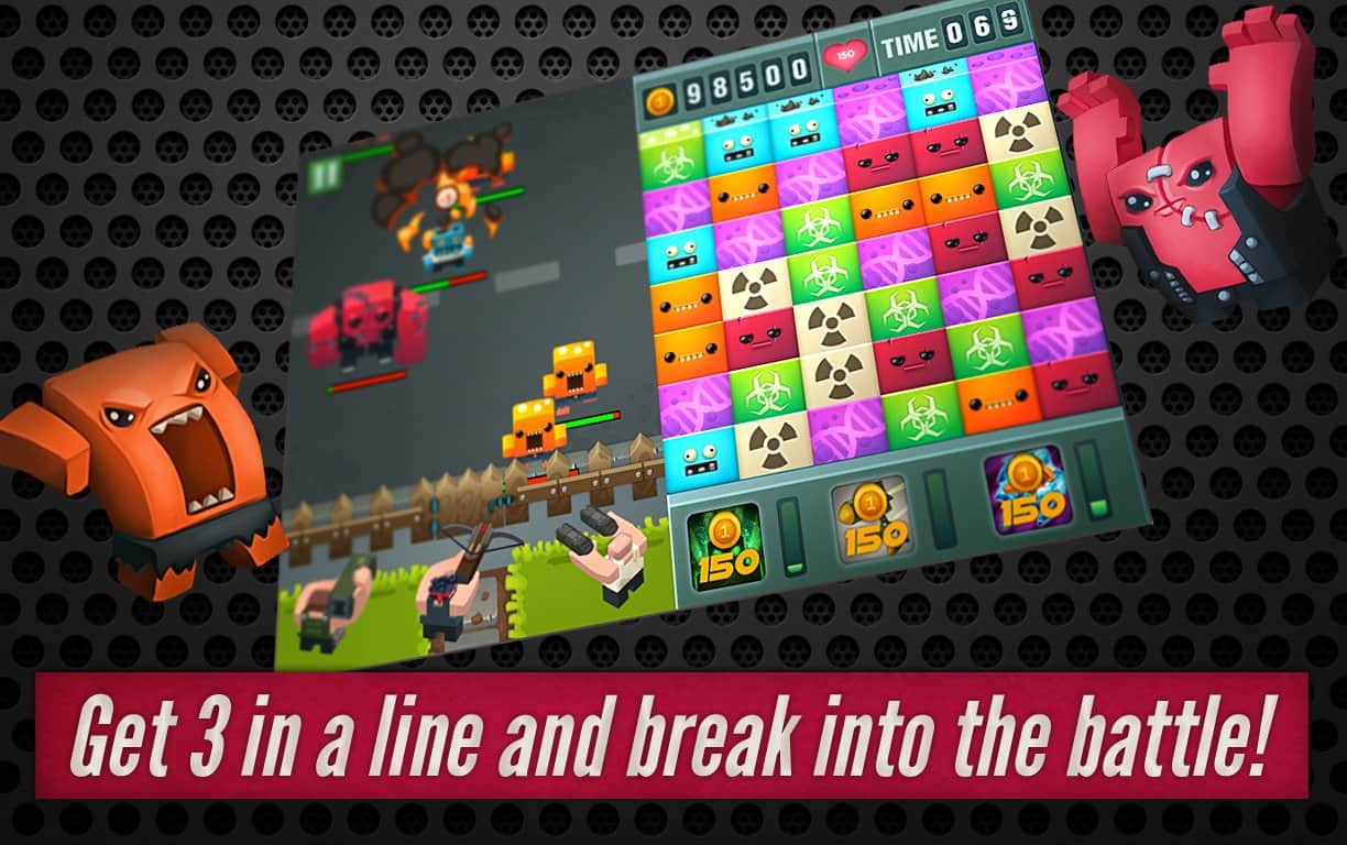 Zombie Puzzle Invasion - игра на аndroid, в которой вам предстоит защищать мир от зомби. Игра из жанра три в ряд с элементами RPG где вам предстоит модернизировать свое оружие, получать специальные функции и улучшать свои навыки переходя от уровня к уровню. Привлекайте тактику, стратегию, ловкость и внимание чтобы победить врага.