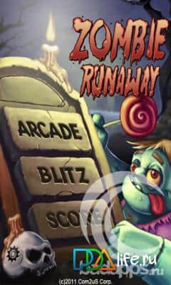 Zombie Runaway - это весёлый раннер на bada, в главной роли выступает добродушный зомби. В игре лёгкое трёхкнопочное управление - влево, вправо и прыжок. Бежим уворачиваемся от могил, собираем монетки. Всё легко и просто, а главное весело.