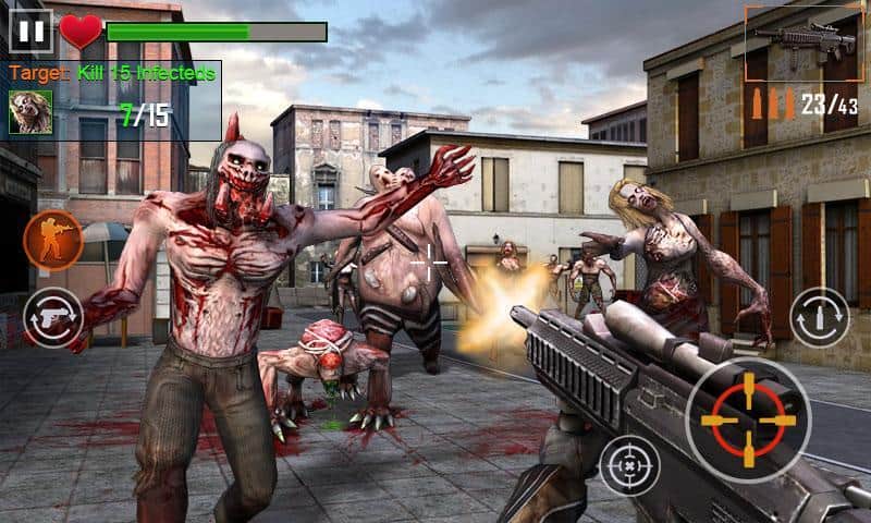 Zombie Shooter 3D – шутер от первого лица на андроид, где вы окажитесь в мире после зомби апокалипсиса. Берите в руки оружие и исследуйте многочисленные и разнообразные локации игры, перемещаясь по улицам города, больницам, тюрьмам и складам и уничтожайте приближающихся к вам со всех сторон зомби. Будьте предельно точны и решительны, чтобы уничтожать зомби с одного выстрела и не дать им подобраться близко к вам. В вашем арсенале будет большой выбор оружия, начиная от пистолетов и пулеметов и заканчивая винтовками и дробовиками. Защищайте и усиливайте свою базу не подпуская к ней зомби. В игре представлено несколько режимов игры, различные локации и собственная база.