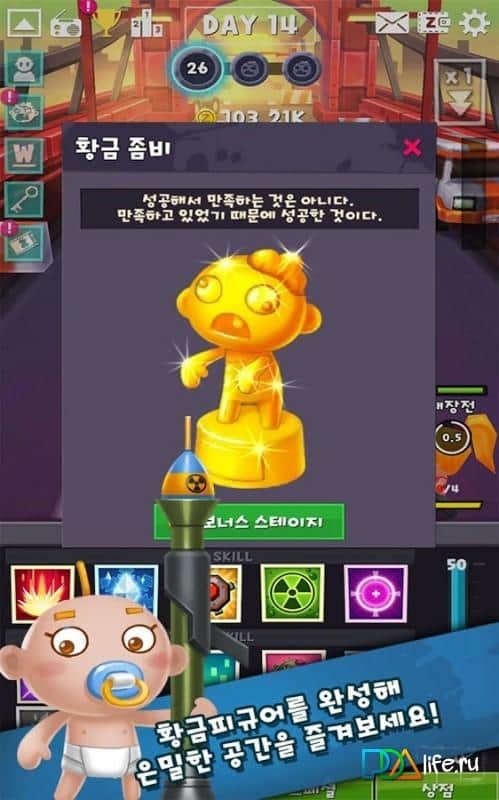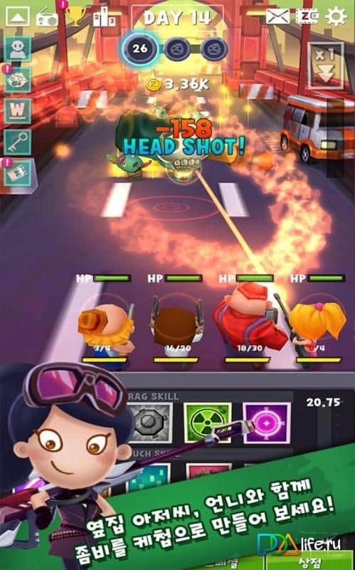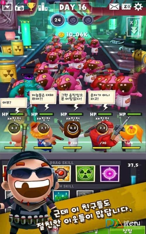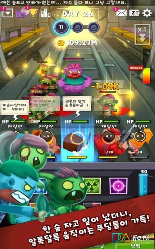 Zombie Slash : 365 Days - Вполне обычный кликер, однако с одной интересной особенностью. Разработчики ввели сюда долю неизвестного, интригующего, ведь на 365 день что то должно случится! И что же это будет, предстоит узнать вам. Все что нужно вам это отстреливать, рубить и уничтожать орды зомби которые направляются на вас, для этого в вашем распоряжении целая команда отважных головорезов с различными видами оружия, а так же дополнительно способности для массового уничтожения нечисти.